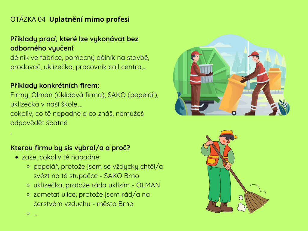 Znáš nějaké firmy, u kterých bys mohl/a nekvalifikovanou práci (práci bez vyučení) vykonávat?
