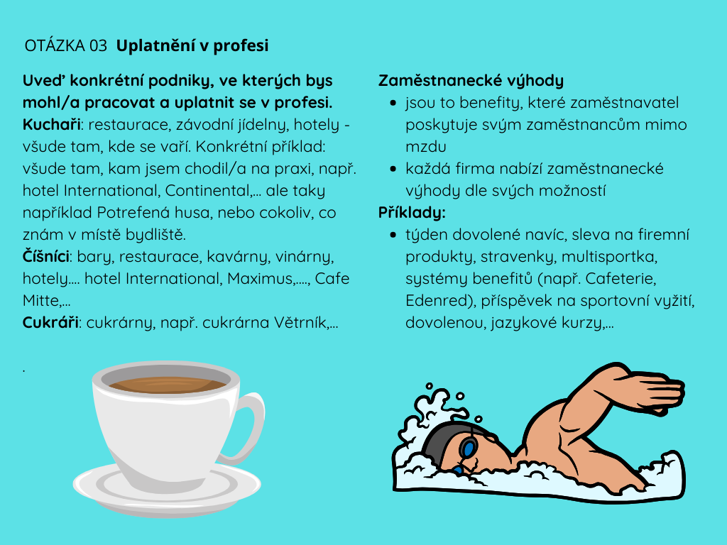 Kde (ve kterých firmách) je možné uplatnit Tvoji profesi? Víš, jaké jsou běžné nástupní podmínky absolventů Tvého oboru do zaměstnání?