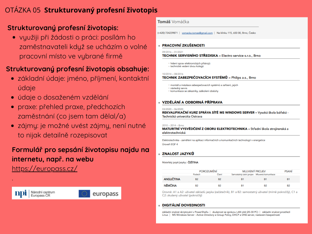 Ke zpracování strukturovaného životopisu lze využít formuláře - kde je získáš?