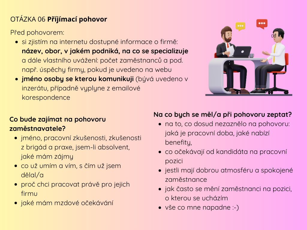 Jak se jako uchazeč o zaměstnání připravíš na přijímací pohovor? Co bude o tobě zajímat tvého případného zaměstnavatele a co bys o zaměstnání ve vybraném podniku měl/a vědět ty?