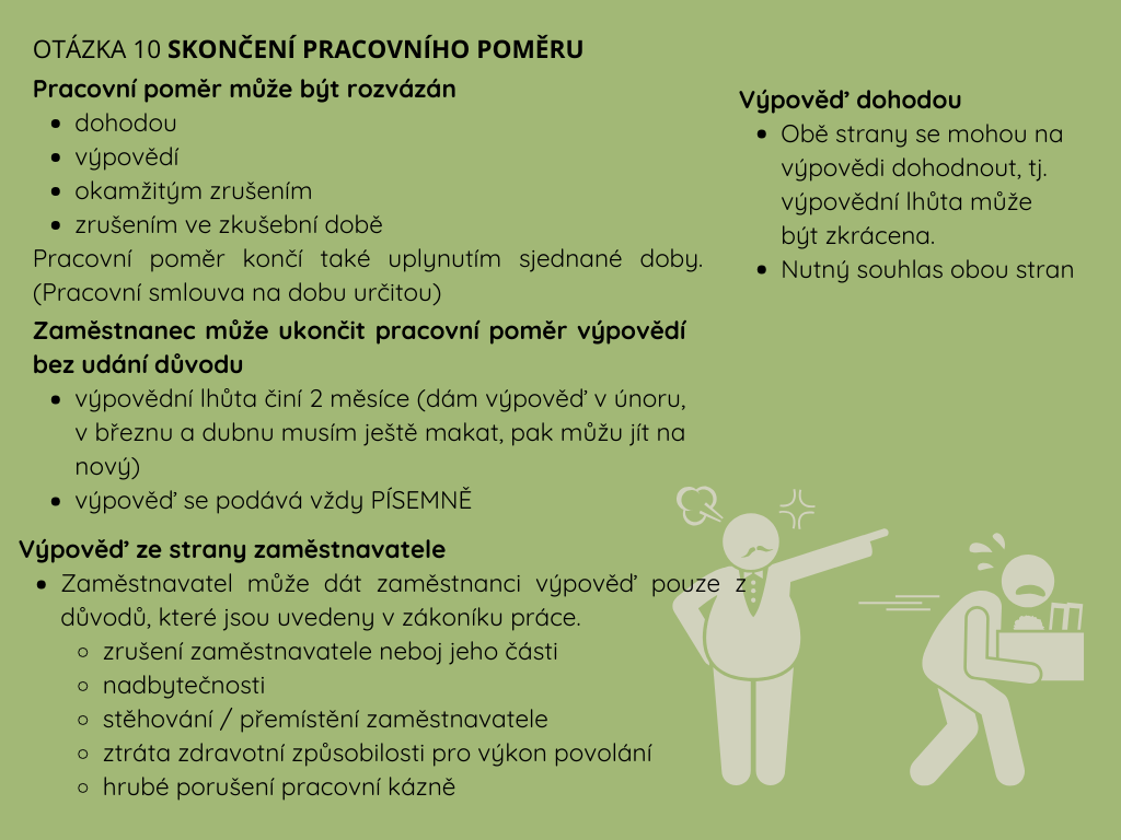 Jaké znáš způsoby skončení pracovního poměru ze strany zaměstnavatele?