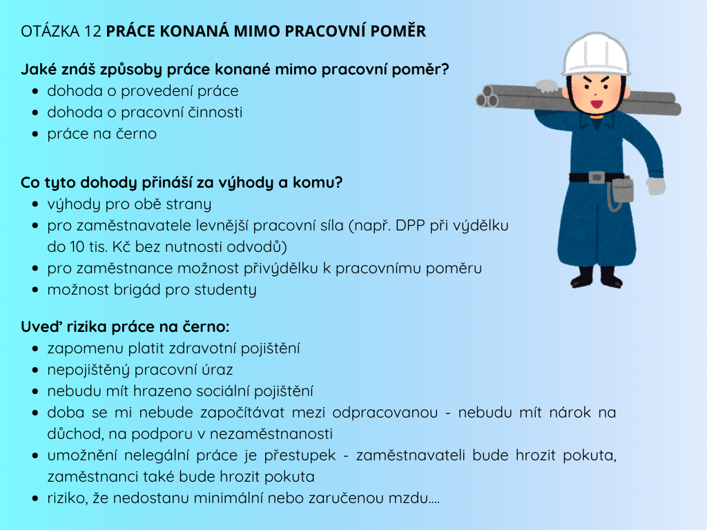Jaké znáš způsoby práce konané mimo pracovní poměr? Jaká jsou rizika práce na černo?