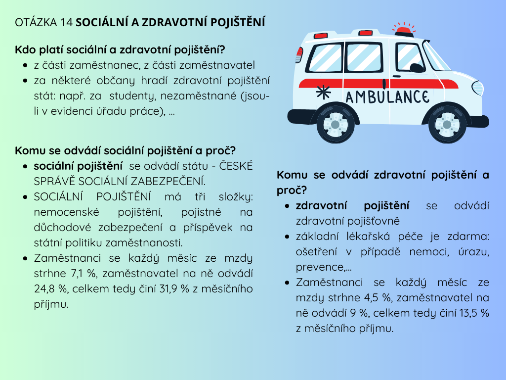 Jaká je podstata sociálního a zdravotního pojištění, k čemu jsou určena? Jaký je mezi nimi rozdíl? Kdo všechno se na jejich platbě podílí?