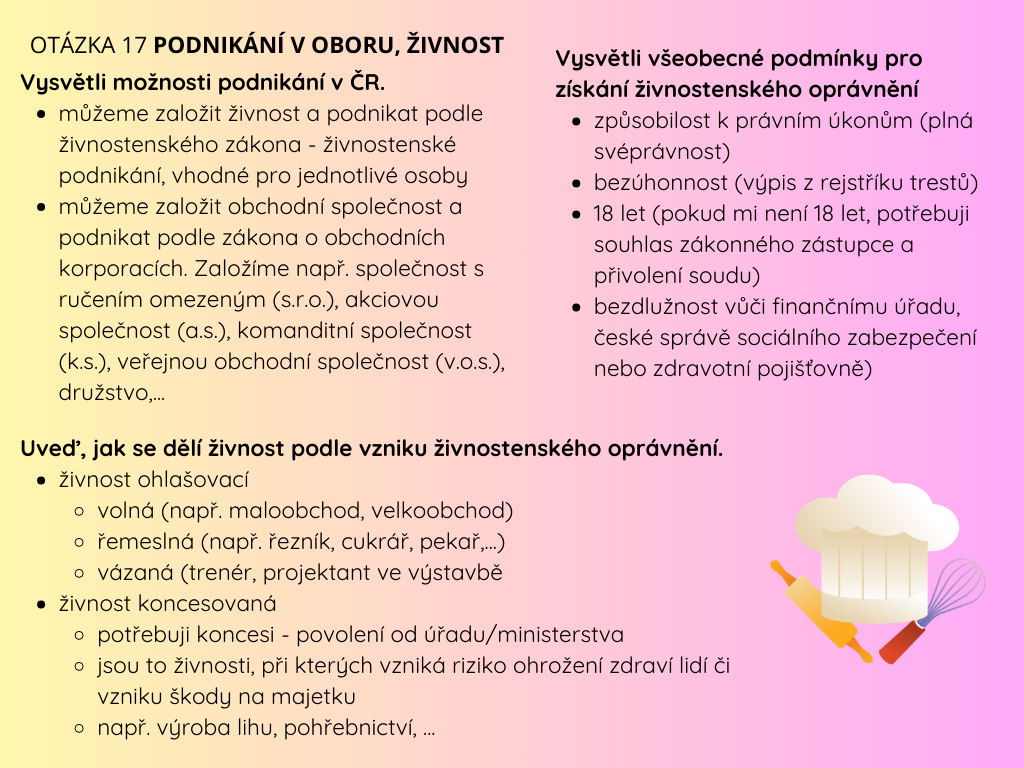 Lze ve tvém oboru samostatně podnikat? Jaké jsou základní podmínky pro podnikání dle živnostenského zákona?