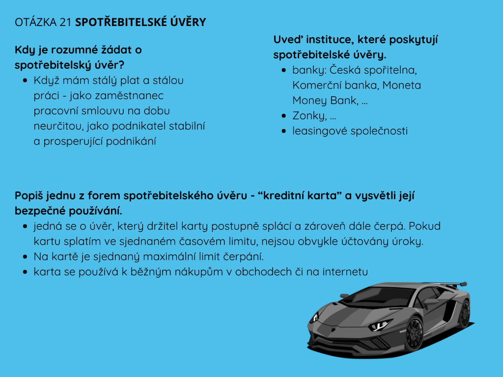 V jakých případech je vhodné žádat o poskytnutí půjčky/úvěru? K čemu bys využil/a spotřebitelský úvěr? Uveď příklady institucí, které poskytují půjčky/úvěry.