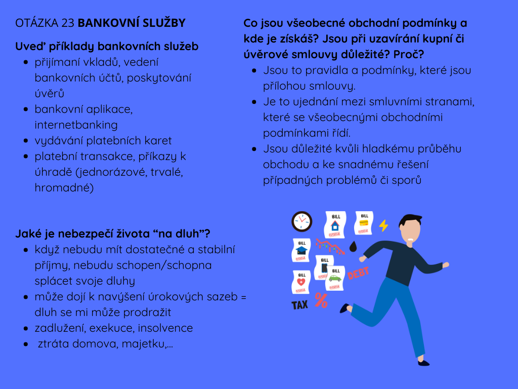 Jaké znáš bankovní služby? Jsou při uzavírání kupní či úvěrové smlouvy důležité všeobecné obchodní podmínky? Jaké nebezpečí plyne ze života na dluh?
