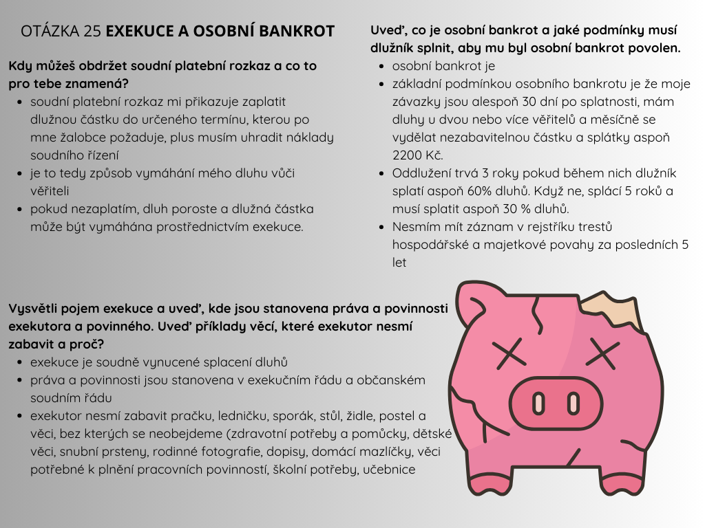 Co je soudní platební příkaz a kdy jej můžeš obdržet? Jak bys řešil/a situaci, kdyby ti hrozila exekuce? Vysvětli podstatu osobního bankrotu.
