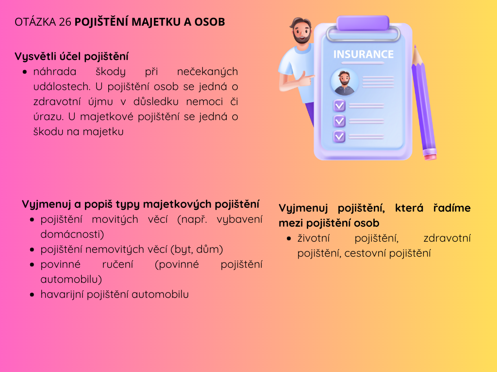 Proč je důležité pojištění majetku a osob? Jaká majetková pojištění a pojištění osob znáš?