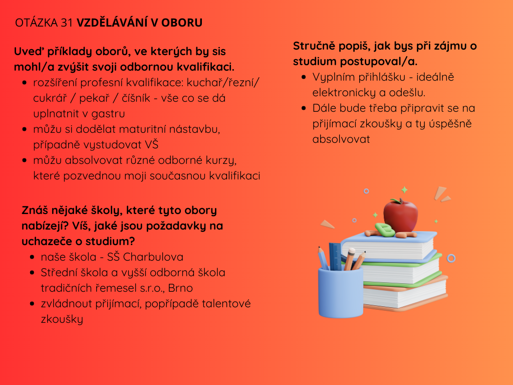 Uveď příklad oboru a odborné školy, ve které by ses mohl/a dále profesně vzdělávat?