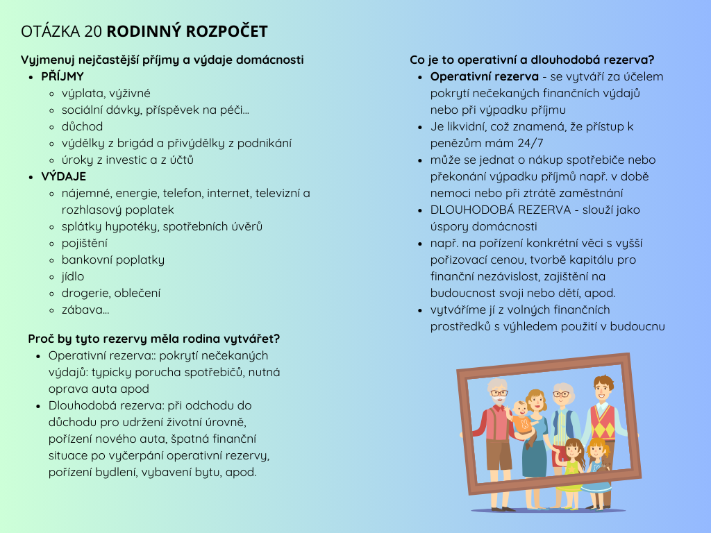 Jaké jsou běžné nejdůležitější výdaje domácnosti? Sestav jednoduchý rodinný rozpočet.